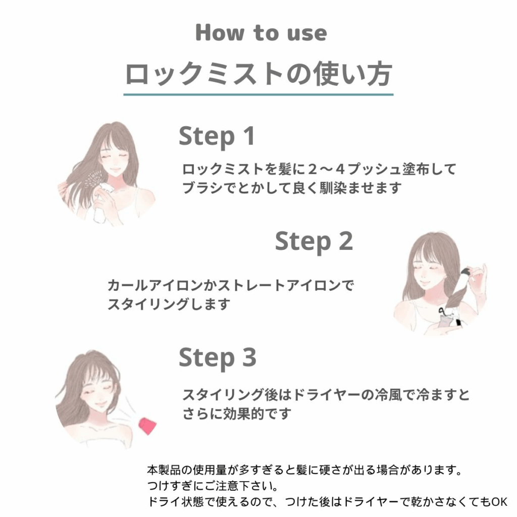 - アイロンで巻いた後、必要に応じて仕上げに軽くスプレー